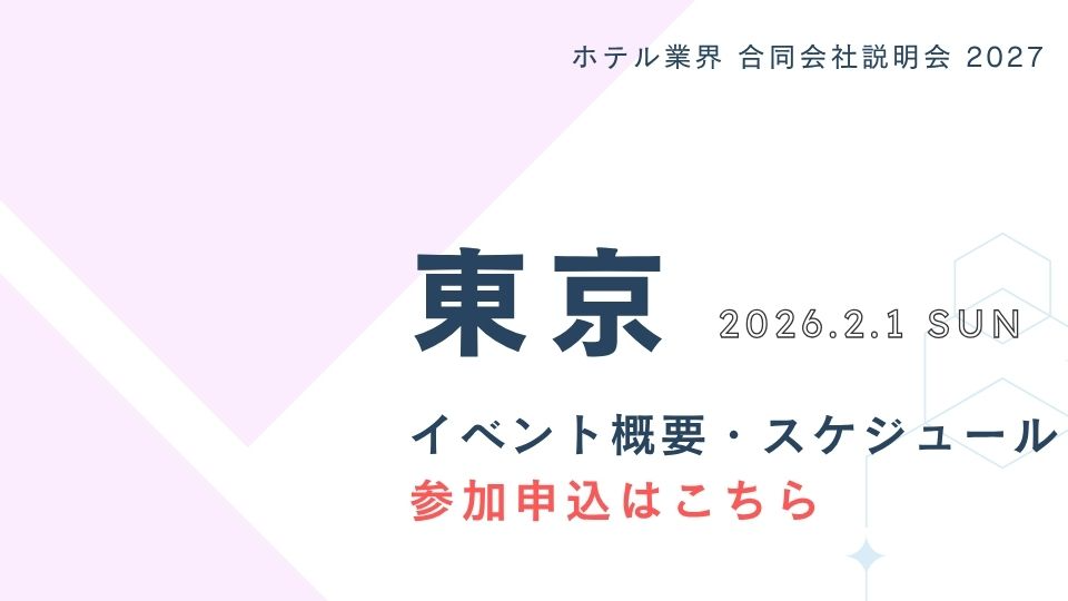 国内最大級のホテル業界就活イベント開催!ホテリエを本気で目指す学生なら参加必須のイベント、ホテル業界 合同会社説明会!